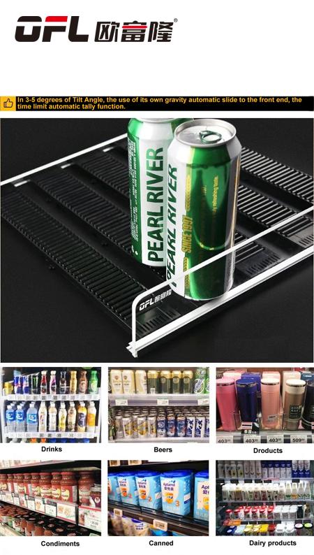 : Improving the presentation of goods to increase sales.The beverage goods on the shelf are kept in a fixed position,and the fixed display angle is determined. It is convenient for customers to take the goods without dumping the goods and automatically arrange the goods.